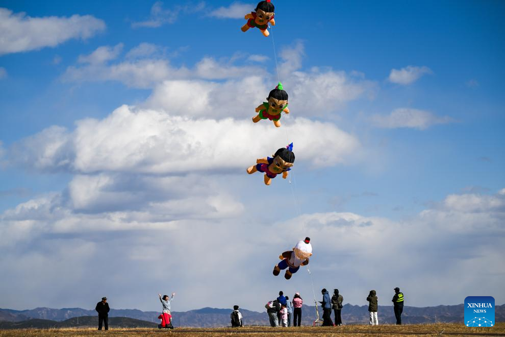 Tourists watch a kite performance during the Qingming Festival holiday at a grassland in Hohhot, north China's Inner Mongolia Autonomous Region, April 5, 2026. (Xinhua/Lian Zhen)