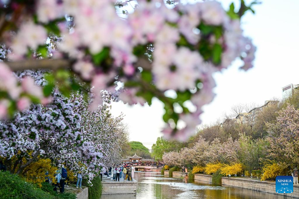 Tourists view crabapple blossoms during the Qingming Festival holiday at a park in Beijing, capital of China, April 5, 2026. (Xinhua/Chen Yehua)
