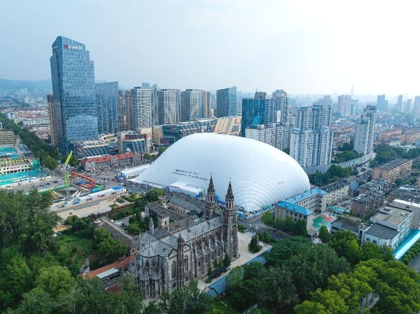 In Licheng district, Jinan, east China's Shandong province, a massive "white cushion" structure at the "Honglou 1905" urban renewal project has recently drawn attention.