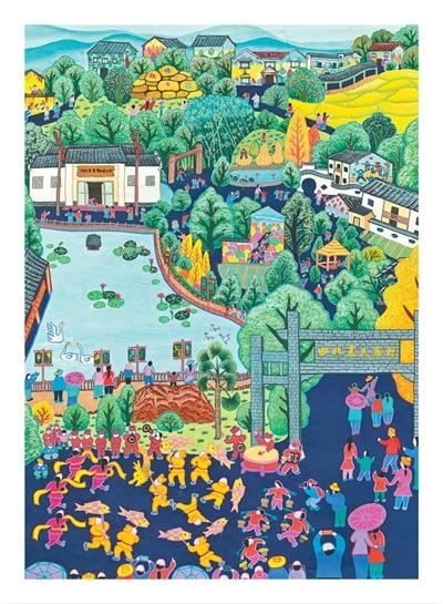 Over the years, nine farmer-painters have put down roots in Tianbei, farming by day and painting by night. They draw on the rhythms of daily life, such as fishing songs, rice planting in the fields, weddings and other celebrations. Their works offer a vivid glimpse into rural life.
