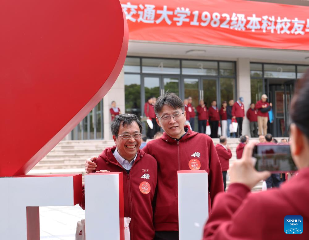 Alumni of Shanghai Jiao Tong University (SJTU) pose for photos at SJTU's Minhang campus in Shanghai, east China, April 8, 2026.