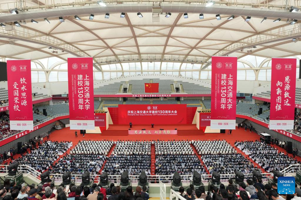 A ceremony marking the 130th anniversary of Shanghai Jiao Tong University (SJTU) is held at its Minhang campus in Shanghai, east China, April 8, 2026.