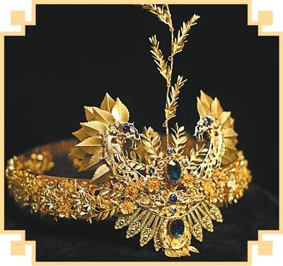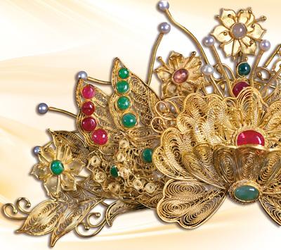 Photo shows a filigree butterfly-and-peony crown crafted by Yan Hong using the Chengdu silver filigree craft. (Photo/He Qiang)