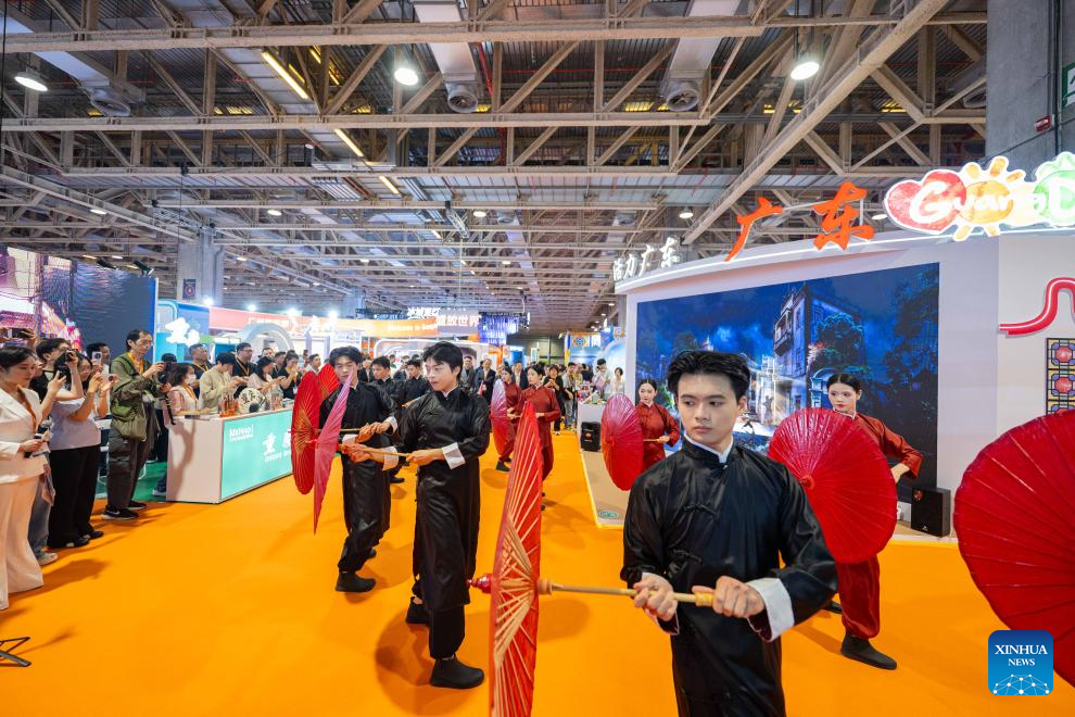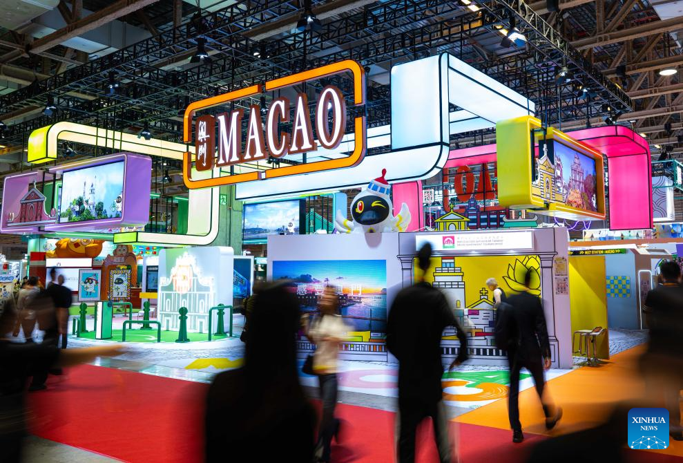 Organized by the Macao Government Tourism Office, this year's expo is held under the theme "Global Convergence, Future Horizons" and attracts over 700 tourism-related enterprises and government entities from 59 countries and regions, as well as more than 600 hosted buyers, the office said in a press release. (Xinhua/Cheong Kam Ka)