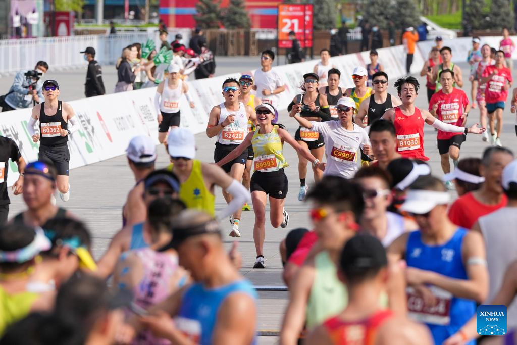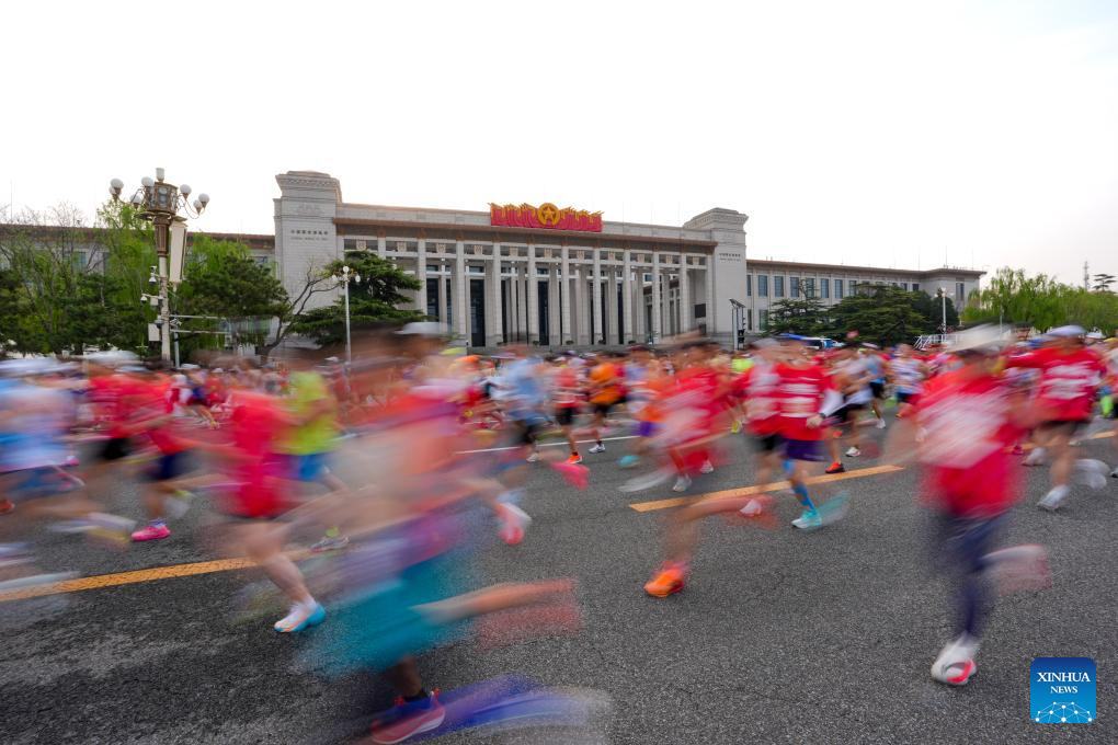 Participants start during the Beijing Half Marathon 2026 in Beijing, capital of China, April 12, 2026. (Xinhua/Ju Huanzong)