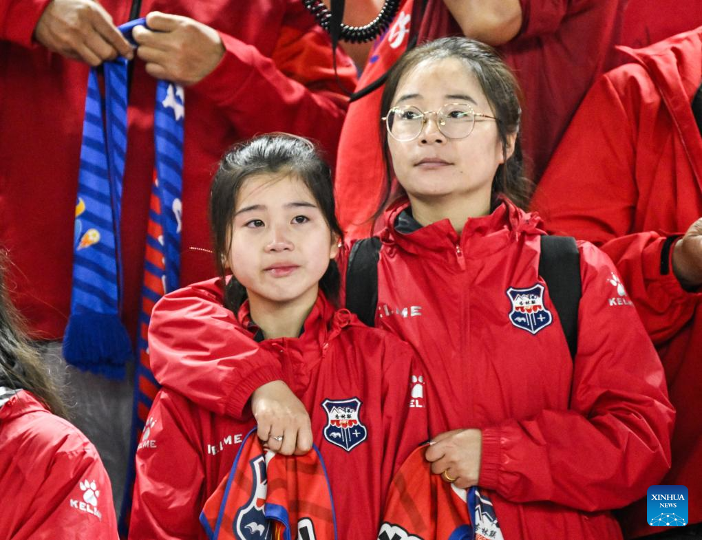 Supporters of Team Nantong react after the opening match between Changzhou and Nantong of the 2026 Jiangsu Football City League in Changzhou, east China's Jiangsu Province, April 11, 2026. (Xinhua/Ji Chunpeng)