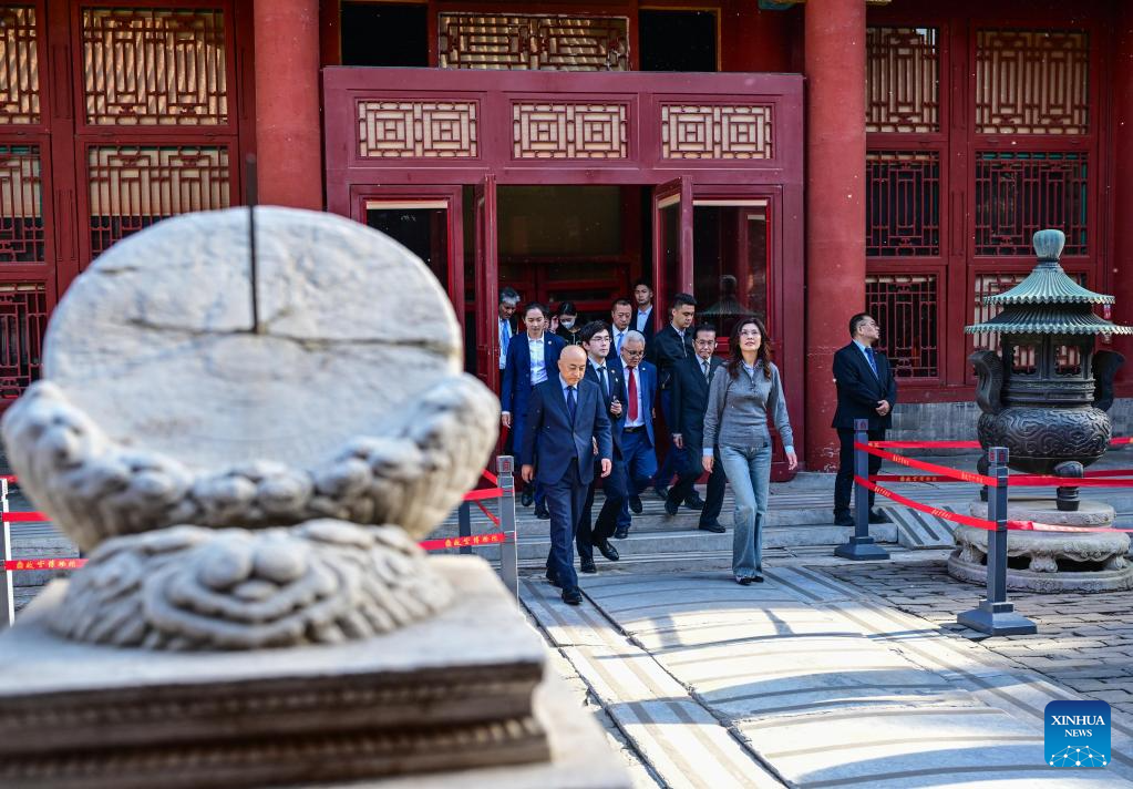 Cheng Li-wun, chairwoman of the Chinese Kuomintang (KMT) party, visits the Palace Museum together with a KMT delegation in Beijing, capital of China, April 11, 2026. (Xinhua/Chen Yehua)
