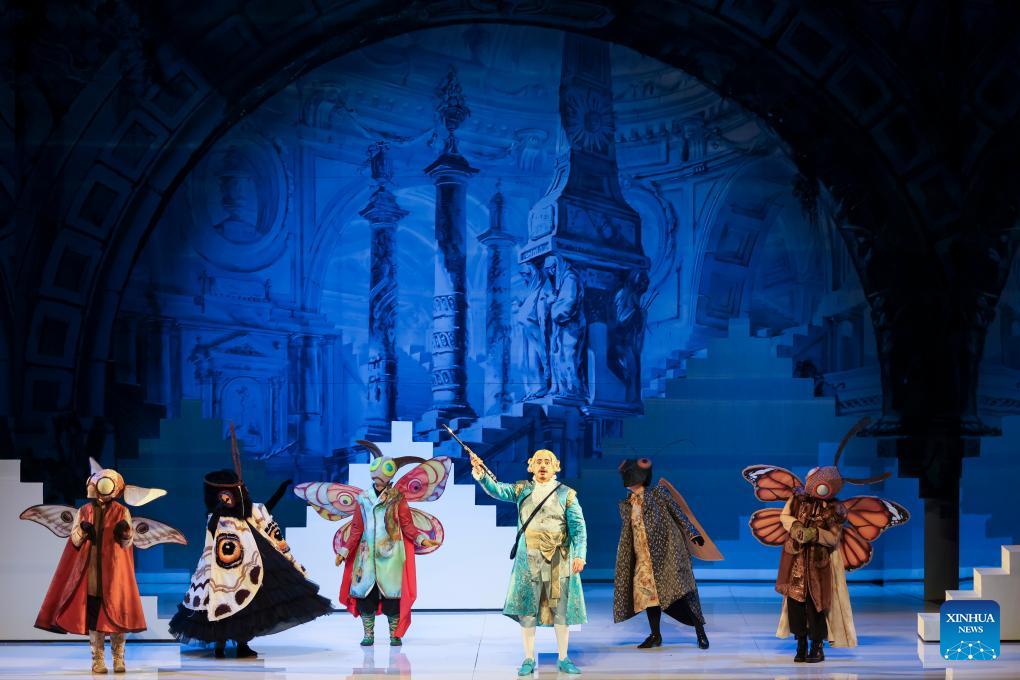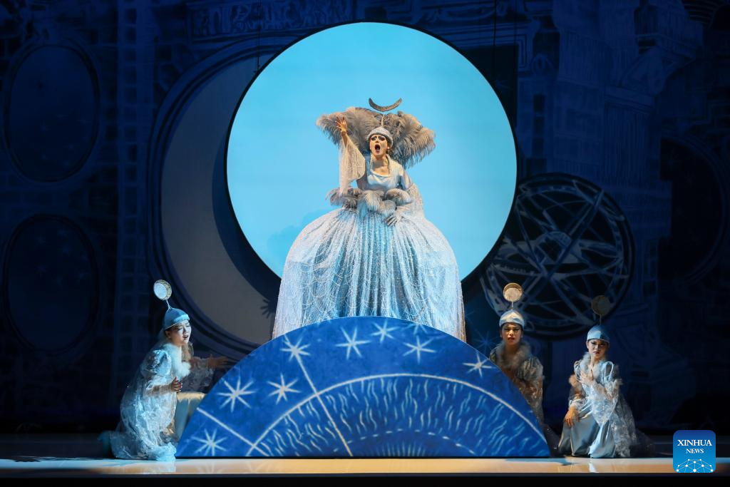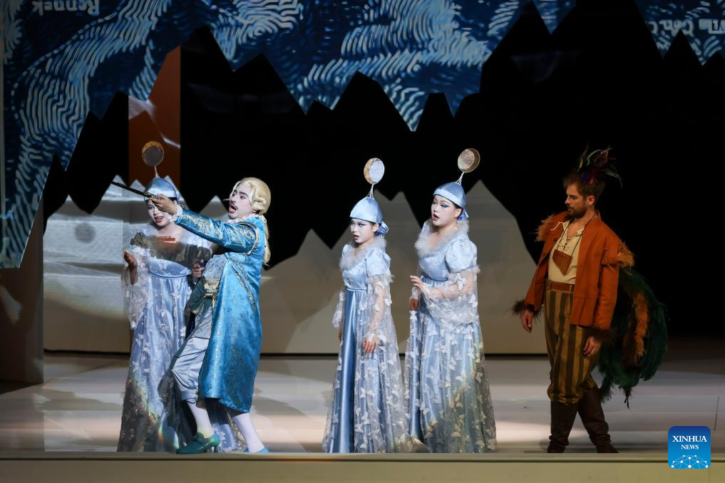 Actors perform "The Magic Flute", an opera composed by Austrian musician Wolfgang Amadeus Mozart, during the closing performance of the 41st Shanghai Spring International Music Festival in Shanghai, east China, April 12, 2026. (Xinhua/Wang Xiang)