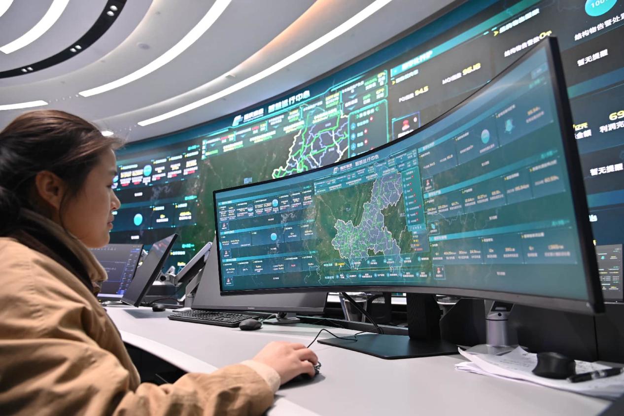 An employee of Chongqing Expressway checks real-time data of expressways in the company's intelligent operations center. (Photo/Sun Kaifang)