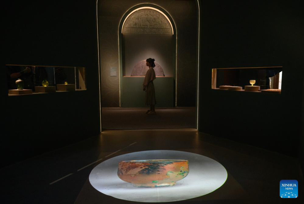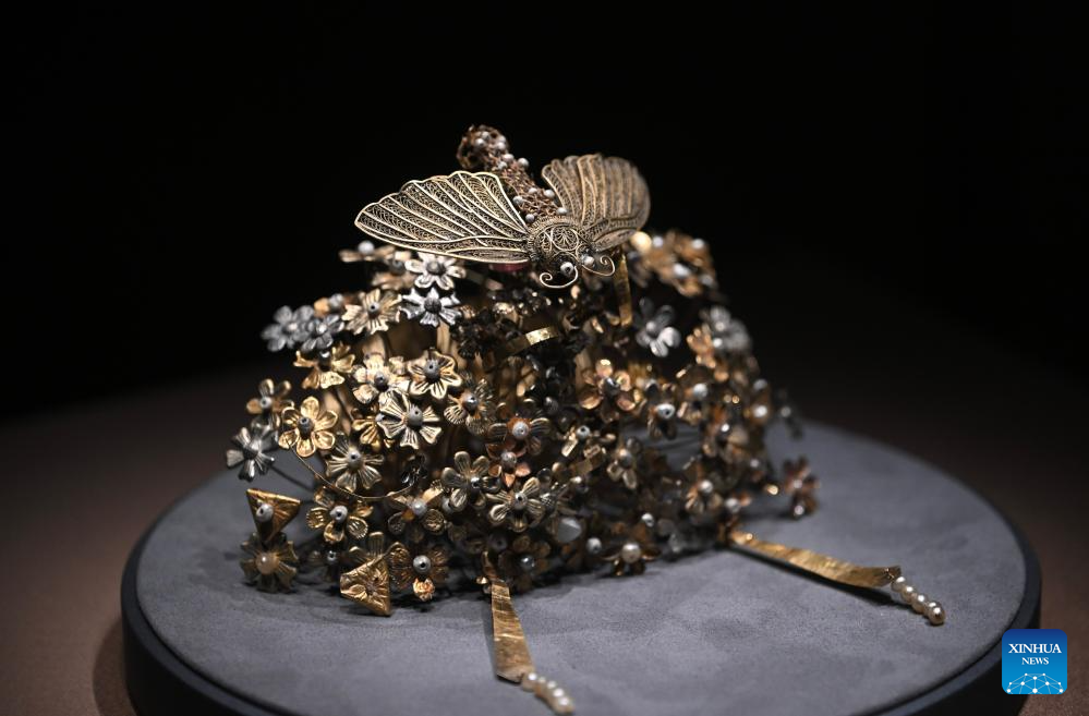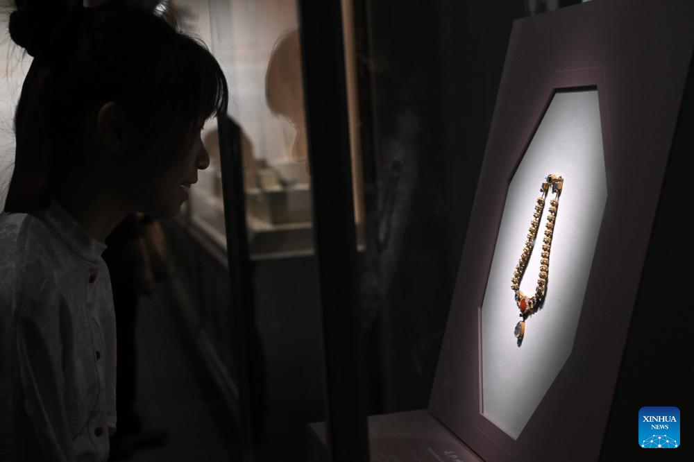 This photo taken on April 13, 2026 shows exhibits at the exhibition "A Glimpse into 6th-7th Century China: Discoveries at Li Jingxun's Tomb" at the National Museum of China in Beijing, capital of China. The ongoing exhibition features relics unearthed from the tomb of Li Jingxun, a young princess who died in 608, and recently discovered key relics from the Northern and Southern Dynasties (420-589) to the Sui Dynasty (581-618). (Xinhua/Jin Liangkuai)