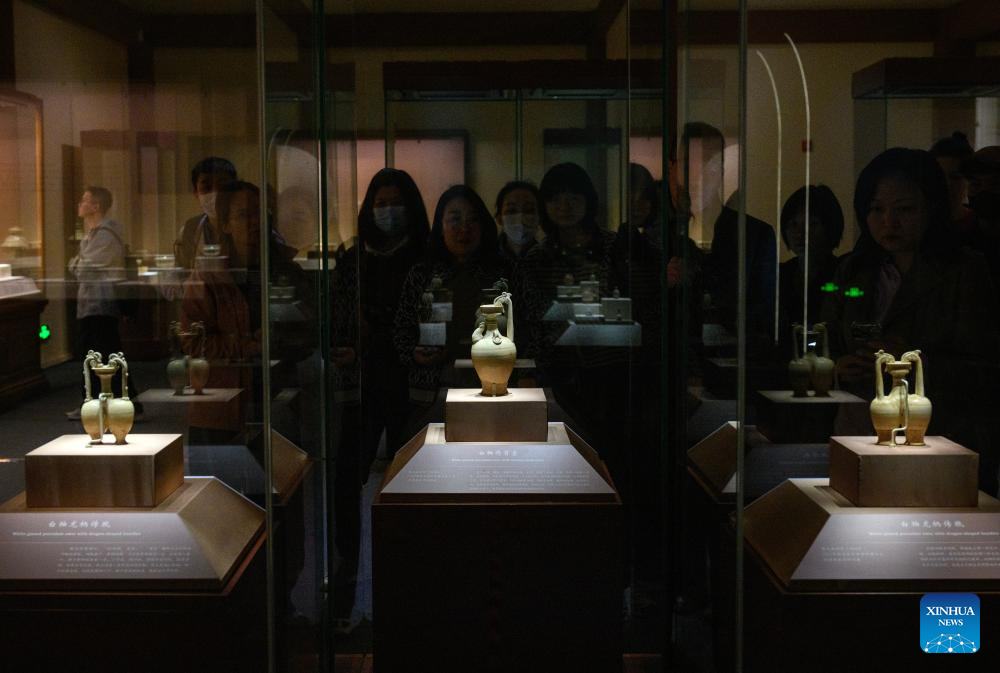 Visitors view the exhibition "A Glimpse into 6th-7th Century China: Discoveries at Li Jingxun's Tomb" at the National Museum of China in Beijing, capital of China, April 13, 2026. The ongoing exhibition features relics unearthed from the tomb of Li Jingxun, a young princess who died in 608, and recently discovered key relics from the Northern and Southern Dynasties (420-589) to the Sui Dynasty (581-618). (Xinhua/Jin Liangkuai)