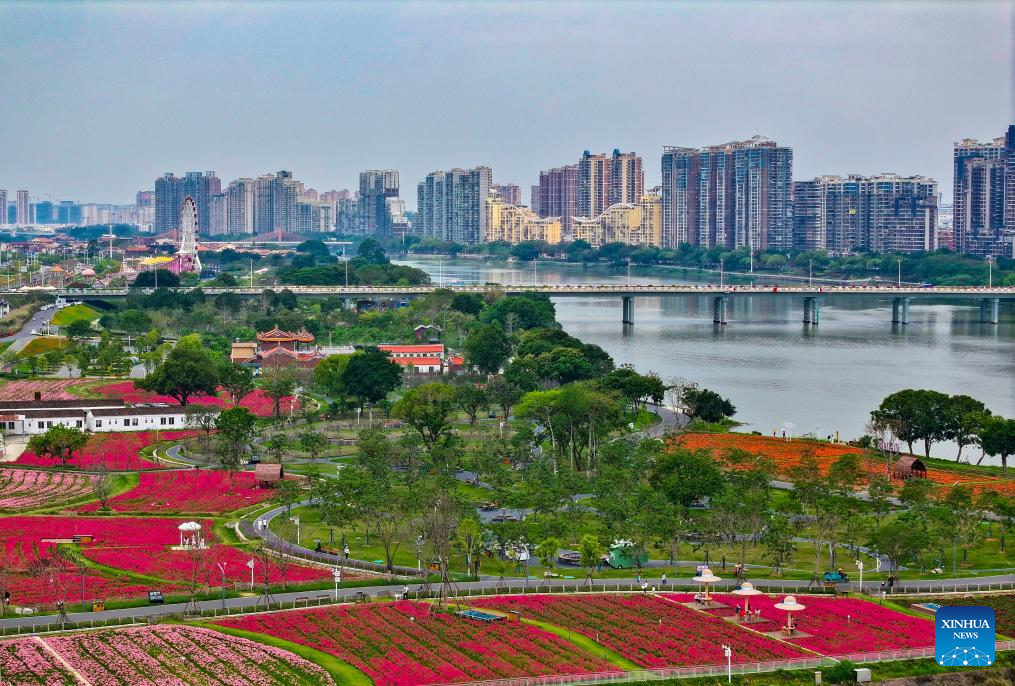 This photo taken on April 11, 2026 shows the scenery in the Long Jiang Years tourist area in Zhangzhou City, southeast China's Fujian Province.