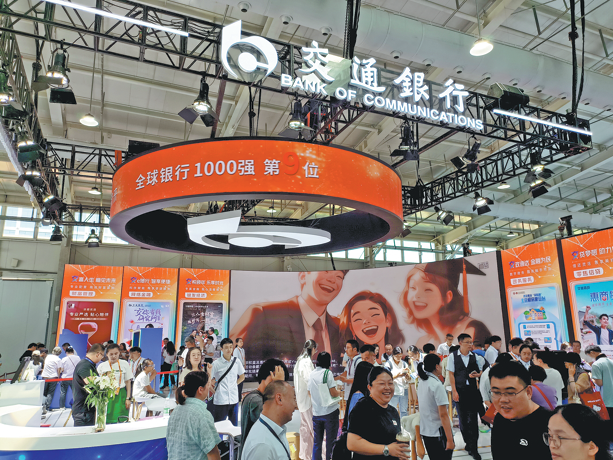 Visitors gather at Bank of Communications' booth during a financial expo in Beijing in September. CHINA DAILY