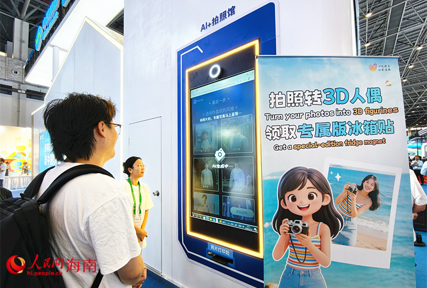 A visitor uses an intelligent system to generate his own 3D digital figurine at the AI photography experience zone during the 6th China International Consumer Products Expo (CICPE) in Haikou, south China's Hainan Province. (People's Daily Online/Fu Zemin)