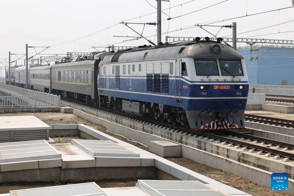 A test train departs from Xiong'an Railway Station in the Xiong'an New Area, north China's Hebei Province, April 15, 2026. The Hebei section of the Xiong'an-Shangqiu High-speed Railway kicked off its coordinated debugging and test on Wednesday.
