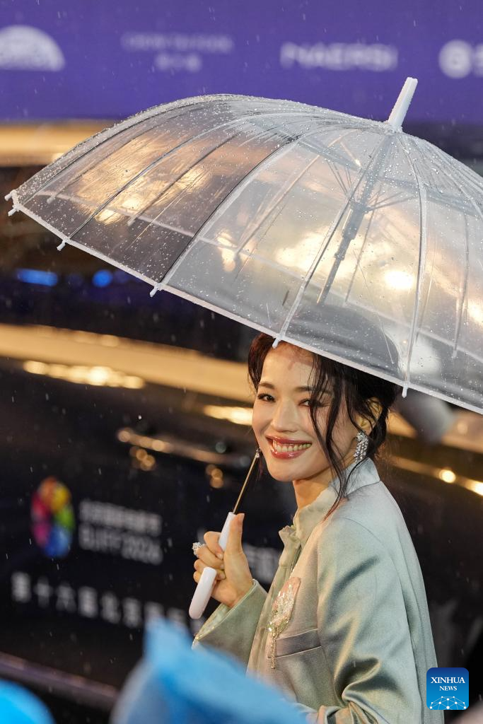 Actress and director Shu Qi appears on the red carpet of the 16th Beijing International Film Festival (BJIFF) in Beijing, capital of China, April 16, 2026. The 16th BJIFF kicked off at the Yanqi Lake International Convention &Exhibition Center here on Thursday. (Xinhua/Ju Huanzong)