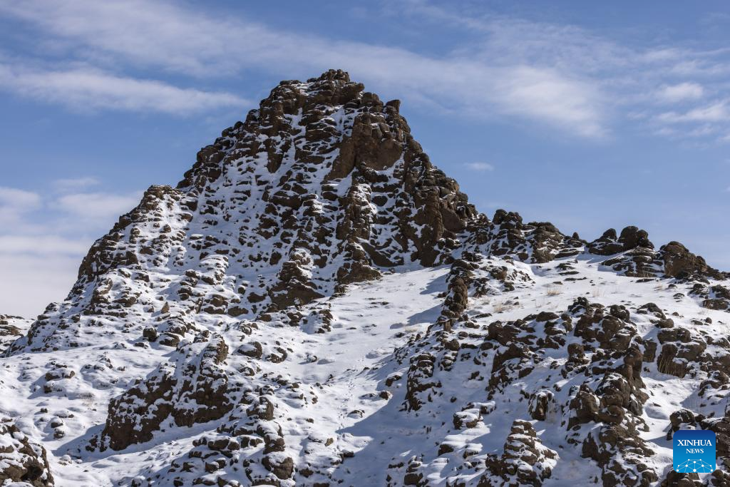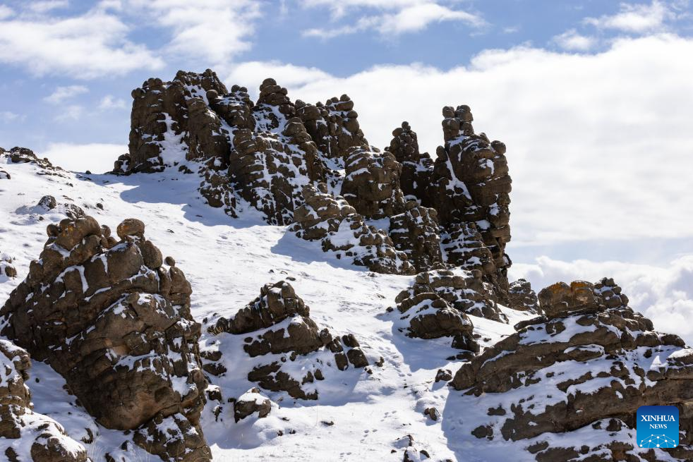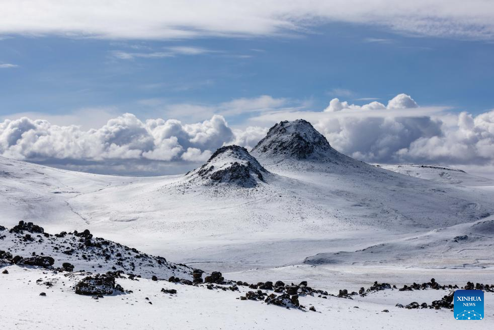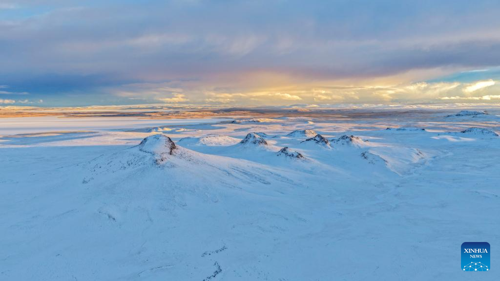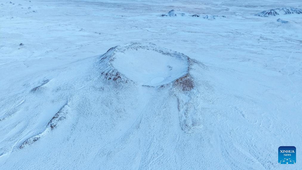 This photo taken on April 10, 2026 shows a view pictured at the Bamoqongzong extinct volcanic cluster area in the Changtang National Nature Reserve, southwest China's Xizang Autonomous Region. The Bamoqongzong extinct volcanic cluster is located deep within the Changtang National Nature Reserve, at an average elevation of approximately 5,000 meters. (Xinhua/Jiang Fan)