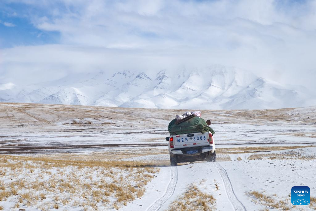 Rangers drive to the Bamoqongzong extinct volcanic cluster area for patrol in the Changtang National Nature Reserve, southwest China's Xizang Autonomous Region, April 9, 2026. The Bamoqongzong extinct volcanic cluster is located deep within the Changtang National Nature Reserve, at an average elevation of approximately 5,000 meters. (Xinhua/Jiang Fan)