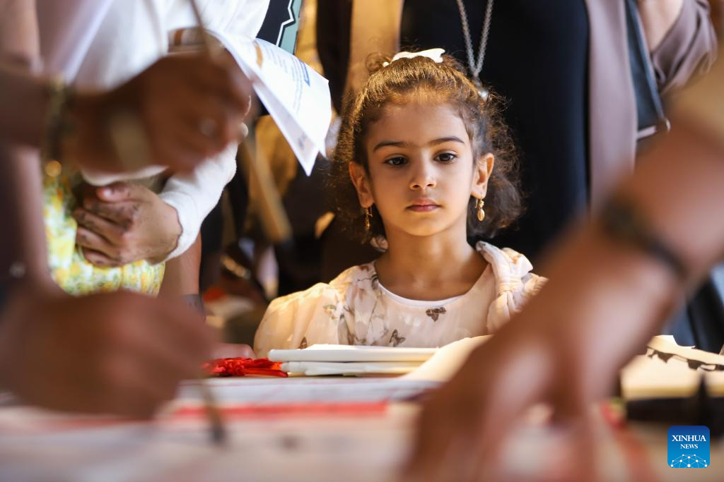 A girl watches as people write Chinese calligraphy during a celebration event marking the International Chinese Language Day in Addis Ababa, Ethiopia, April 16, 2026. The 17th United Nations (UN) Chinese Language Day was marked on Thursday in Addis Ababa, the capital of Ethiopia, highlighting the language's global significance and its enduring cultural heritage. (Photo by Michael Tewelde/Xinhua)