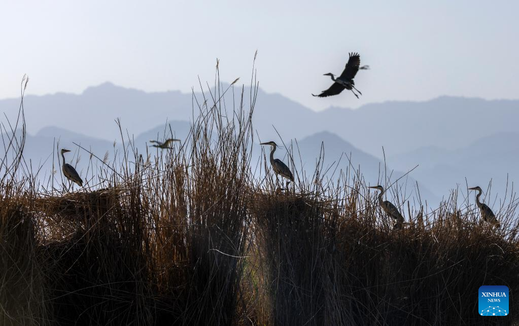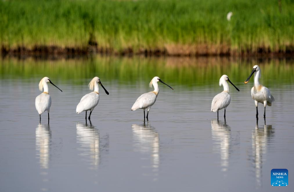 In recent years, the area has continuously advanced the systematic governance of mountains, rivers, forests, farmlands, lakes, grasslands and deserts, restored lakes previously used for aquaculture, converted farmlands back into wetlands, and improved both water quality and the overall ecological environment. The number of birds species in the area has grown from 178 in 2011 to 216. (Xinhua/Feng Kaihua)