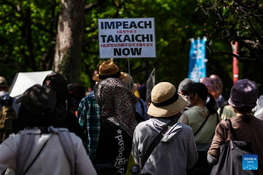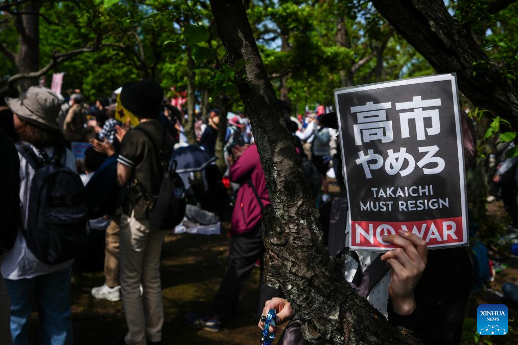 "The fact that so many people have gathered here to protest the Takaichi administration's push for constitutional revision shows that the Japanese people do not want war," a protester surnamed Hara told Xinhua. It was her fourth time attending such a rally.