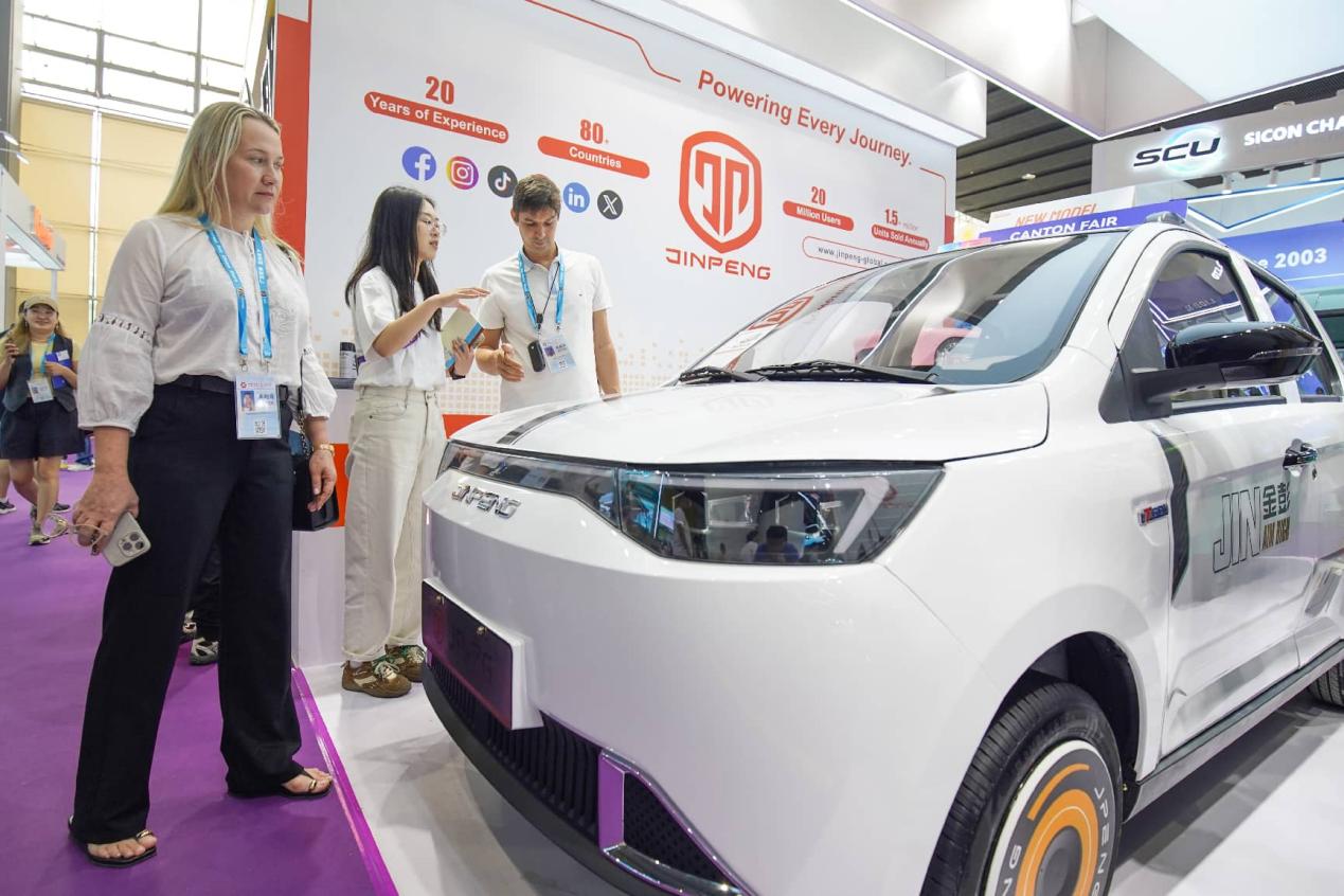 A new energy vehicle is exhibited at the 139th edition of the China Import and Export Fair, April 15, 2026. (Photo/Liu Bing)