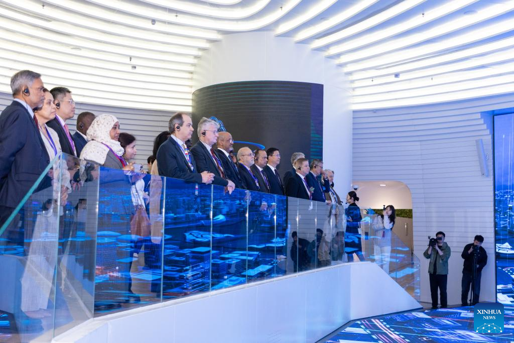 In Xiong'an New Area, known as China's "city of the future," the delegation held talks with relocated state-owned enterprises and visited the urban computing center, which operates a digital twin of the city that displays real-time traffic and utility data.