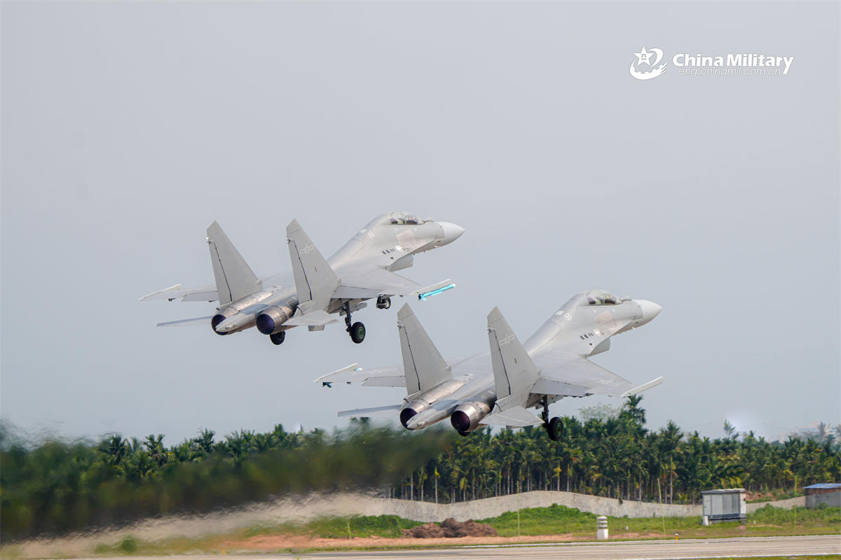 J-16 fighter jets attached to a unit under the Chinese PLA Air Force take off for a training exercise on April 3, 2026. (eng.chinamil.com.cn/Photo by Jiang Guangzhen)