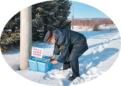 Ye Long, conductor of train 4181, places items at a trackside halt to be collected by a resident along the line. (Photo courtesy of China Railway Harbin Group Co., Ltd.)