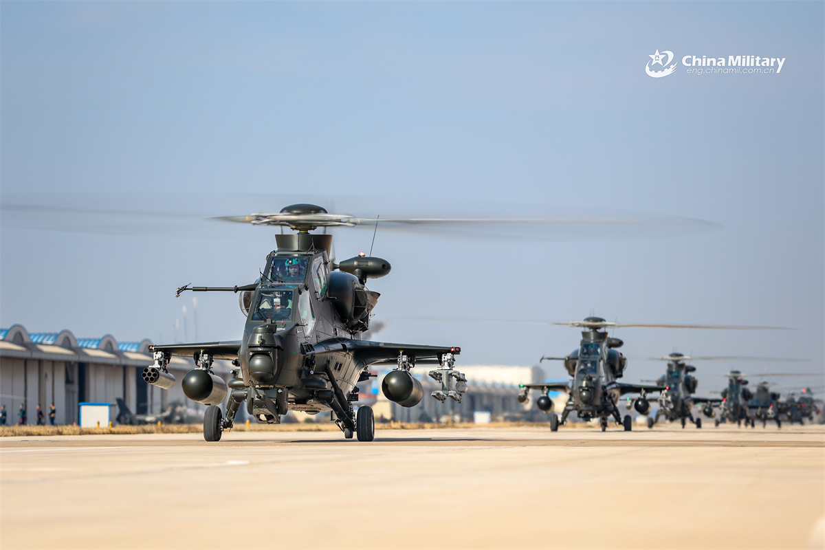 Z-10 attack helicopters attached to a brigade with the army under the Chinese PLA Northern Theater Command get ready to take off during a ground-aerial coordination training exercise in early April, 2026. (eng.chinamil.com.cn/Photo by Liu Yuchen)