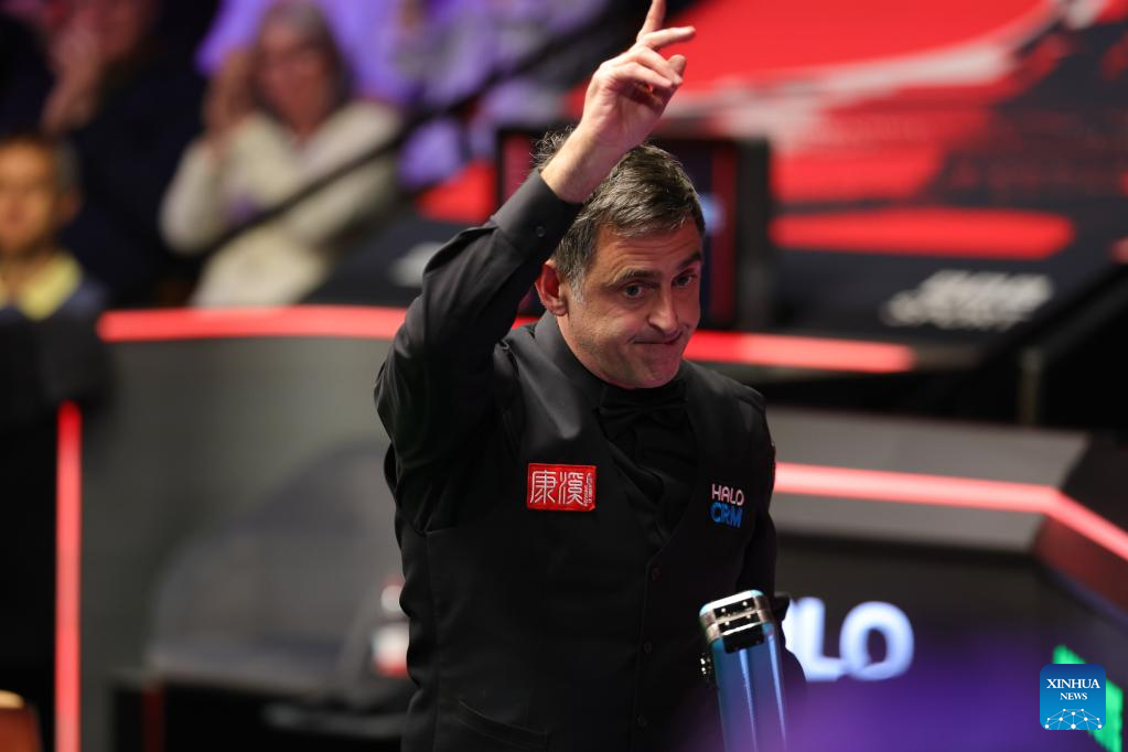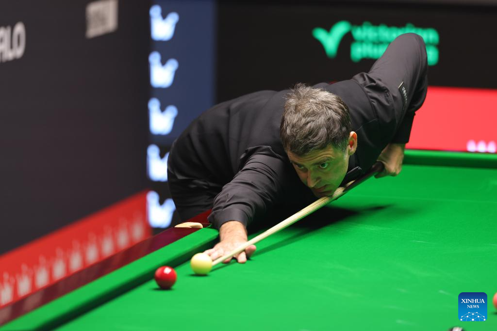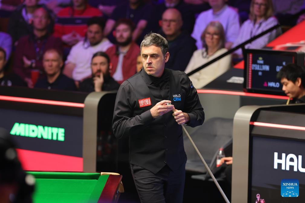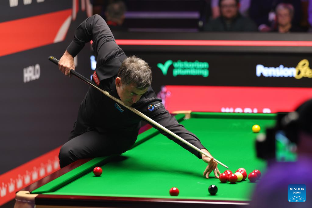 Ronnie O'Sullivan competes during the round 1 match between Ronnie O'Sullivan of England and He Guoqiang of China at the World Snooker Championship 2026 in Sheffield, Britain, on April 22, 2026. (Photo by Zhai Zheng/Xinhua)
