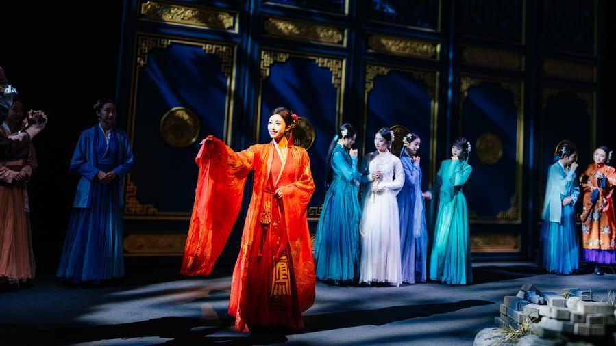 This photo taken on April 23, 2026 shows a performance staged at the "Unique Dream of Red Mansion" theater complex in Langfang, north China's Hebei Province. (Xinhua/Ren Liying)