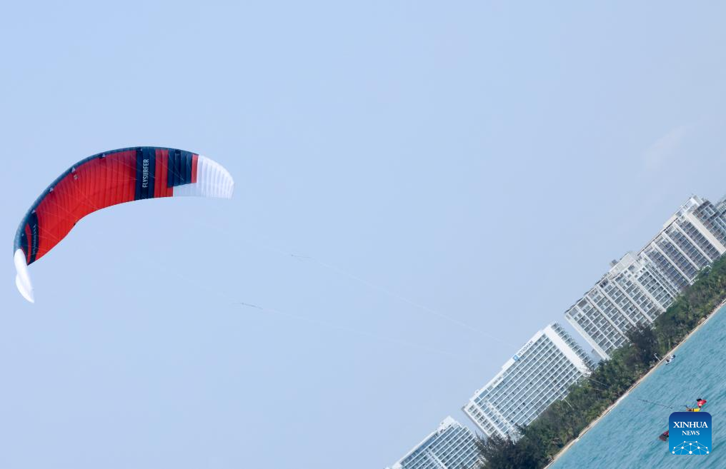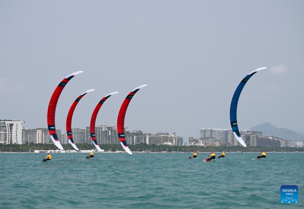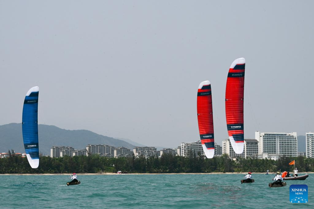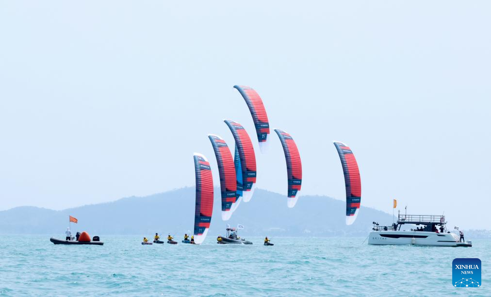 Athletes compete during the Formula Kite Men race of sailing at the 6th Asian Beach Games in Sanya, south China's Hainan Province, April 23, 2026. (Xinhua/Wei Hai)