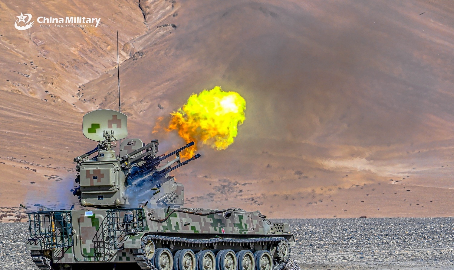 A PGZ-04 self-propelled anti-aircraft vehicle attached to an air defense element of a brigade under the Chinese PLA 76th Group Army opens fire during a live-fire training exercise on April 1, 2026. (eng.chinamil.com.cn/Photo by Liu Jiyang)