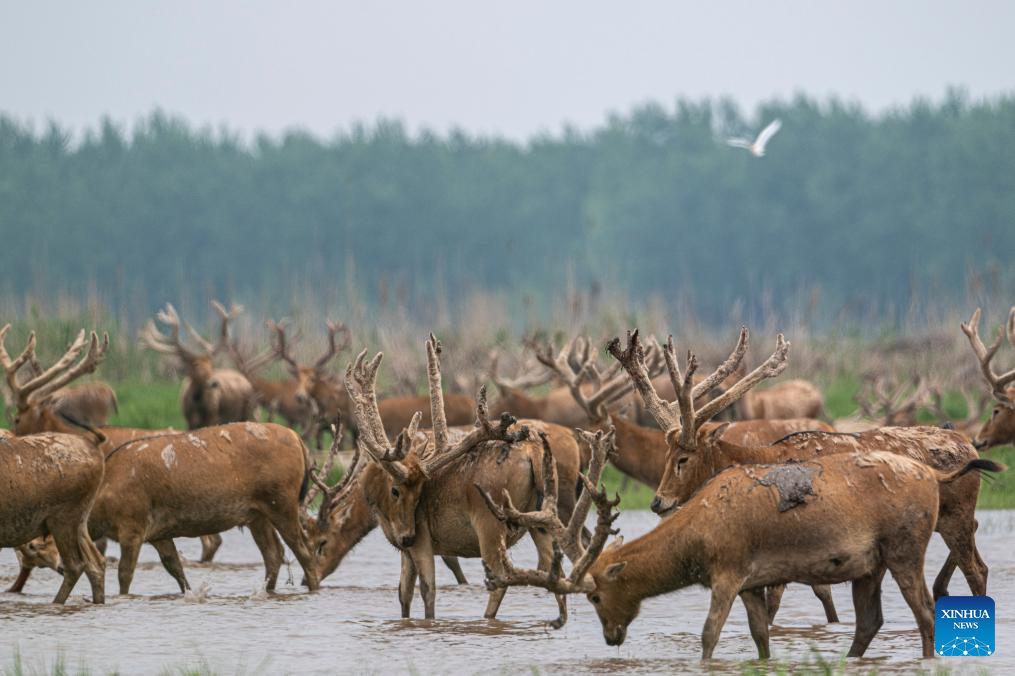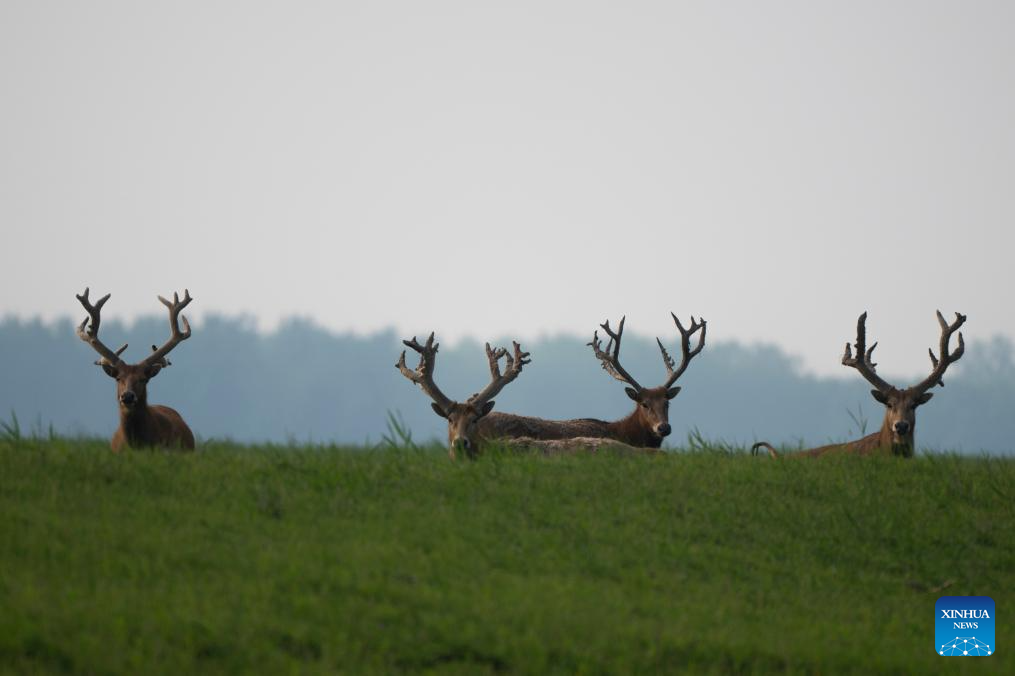 After years of efforts by protectors and continuous improvement of the local ecological environment, the population of milu deer at the nature reserve has reached 2,901 by the end of 2025. (Xinhua/Du Zixuan)