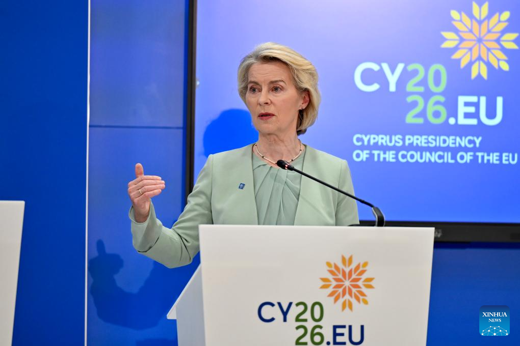 European Commission President Ursula von der Leyen attends a press conference after an EU summit in Nicosia, Cyprus, April 24, 2026. (Xinhua/Lyu You)