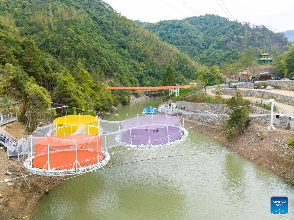 An aerial drone photo taken on March 29, 2026 shows an adventure park in Yunhe County of Lishui City, east China's Zhejiang Province. In Zhejiang, the birthplace of the landmark Green Rural Revival Program, rural transformation over the past 23 years has evolved from merely improving living conditions to delivering common prosperity while building beautiful villages.