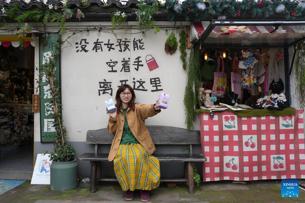 Ye Lupin posts for a photo in front of the shop she operates in Lizu Village of Yiwu, east China's Zhejiang Province, March 31, 2026. In Zhejiang, the birthplace of the landmark Green Rural Revival Program, rural transformation over the past 23 years has evolved from merely improving living conditions to delivering common prosperity while building beautiful villages.