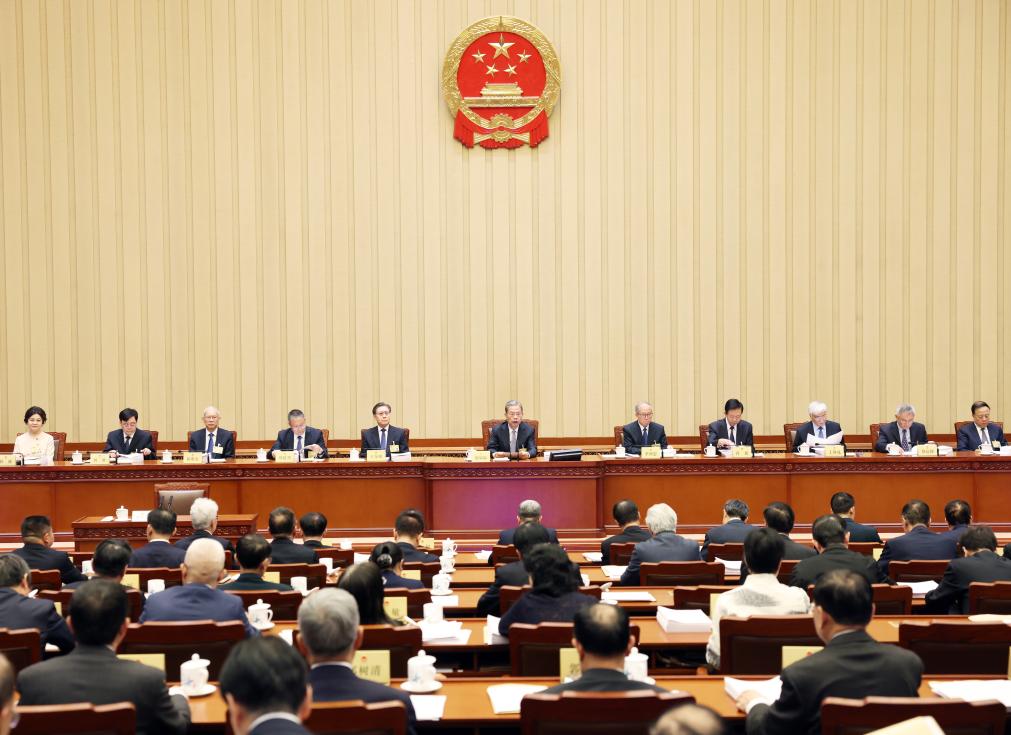 Zhao Leji, chairman of the Standing Committee of the National People's Congress (NPC), presided over the first plenary meeting of the 22nd session of the 14th NPC Standing Committee.