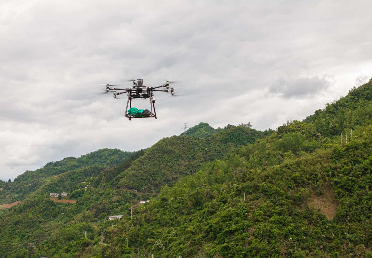 A drone delivers parcels in Zhushan county, Shiyan, central China's Hubei province. (Photo/Shi Ruhua)