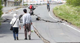 Aftermath of 7.3-magnitude earthquake in Kumamoto