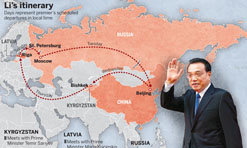 Chinese premier arrives in Kazakhstan for official visitChinese Premier Li Keqiang arrived in Astana for an official visit to Kazakhstan. During his stay, Li and his Kazakh counterpart, Bakytzhan Sagintayev, will hold the third regular meeting between the two countries' prime ministers.