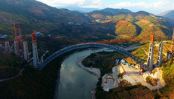 China builds rail arch bridge with world's longest span