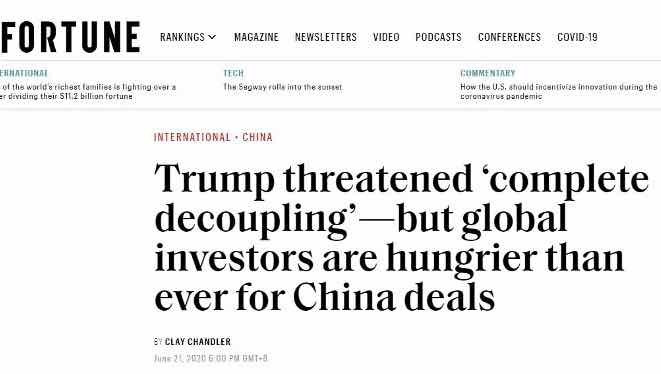 Threat of a “complete decoupling” from China remains an unappealing prospect: US media