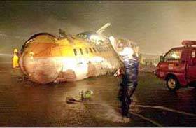 A jetliner of the Singapore Airlines, SQ006, bound for Los Angeles, crashed and caught fire seconds after it took off from the Taipei international airport Tuesday, according to reports reaching in Hong Kong.(