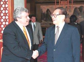 President Jiang Zemin gave an interview Tuesday morning to journalists from Russia's Itar-Tass news agency and Public Russian Television. (