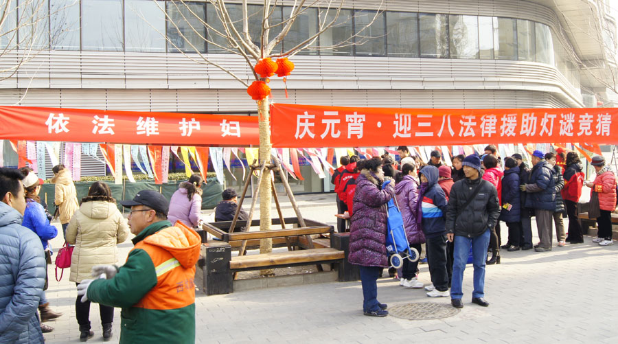 The Legal Aid Center of Xicheng district, Beijing holds a riddle contest on the Lantern Festival on March 5, 2015. [Photo: CRIENGLISH.com]