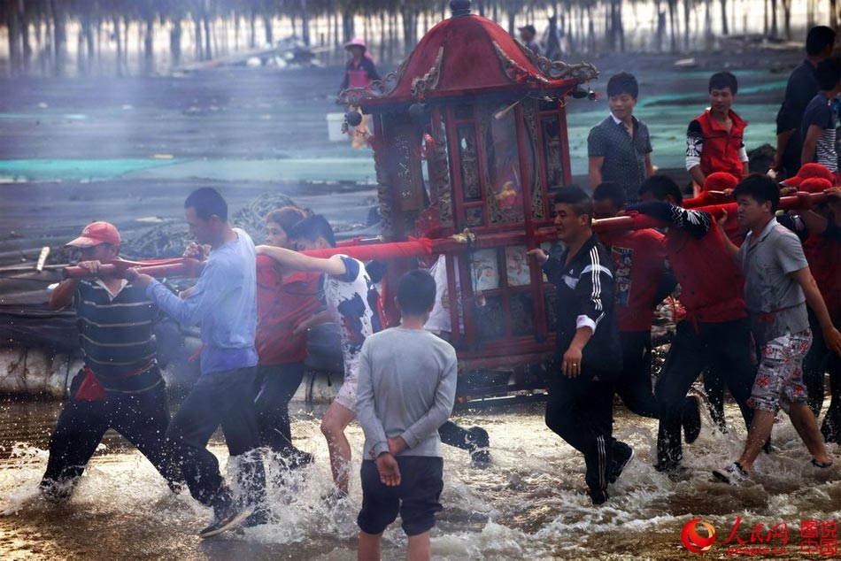 Followers of Mazu participate in the waterway ceremony for the sea goddess to inspect her jurisdiction areas and bless worshippers. (Photo/people.cn)