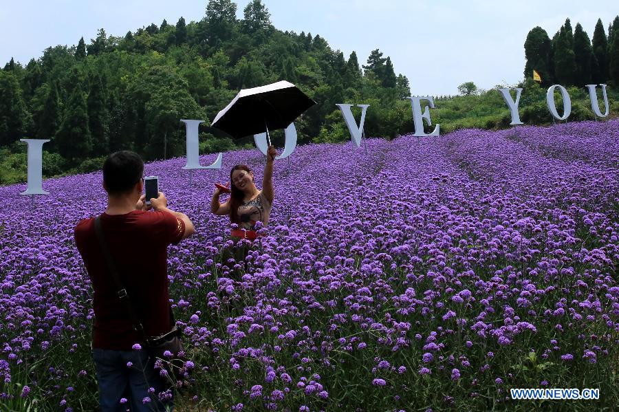 Tourists take photos at a lavender garden in Fenghuang County, Xiangxi Tujia-Miao Autonomous Prefecture, central China's Hunan Province, July 20, 2015. (Xinhua/Peng Biao)