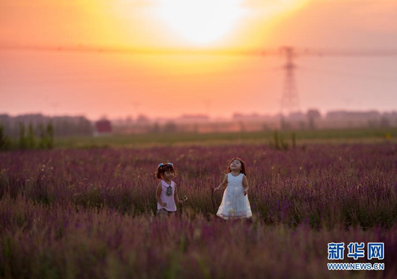 Two children enjoy the sea of lavenders in Hohhot, N China on Aug. 9, 2015. (Xinhua/ Ding Genhou)